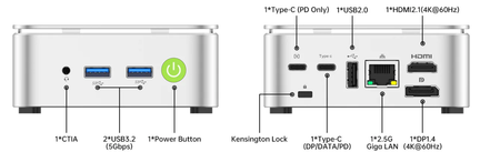 Vaikuttava teho kompaktissa koossa - Tehokas 4-ydin Ryzen 5 - 16Gt RAM - 512Gt NVme SSD Wifi - Bluetooth - 2.5G Gigabit ethernet