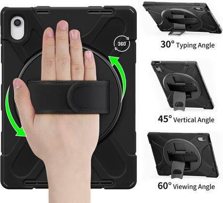 CMD Iskunkestävä suojakotelo iPad 11" ja 10.9" - 360 kääntyvä tukijalka - Säädettävä olka- ja käsihihna - kynäpidike