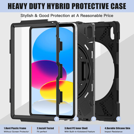 Iskunkestävä suojakotelo iPad 11" ja 10.9" - 360 kääntyvä tukijalka - Säädettävä olka- ja käsihihna - kynäpidike