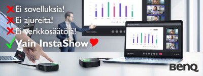 BenQ InstaShow WDC15 on ainutlaatuinen, ohjelmistovapaa ja Plug & Play -ratkaisu, joka mahdollistaa sisällön esittämisen neuvottelutiloissa yhdellä napin painalluksella.